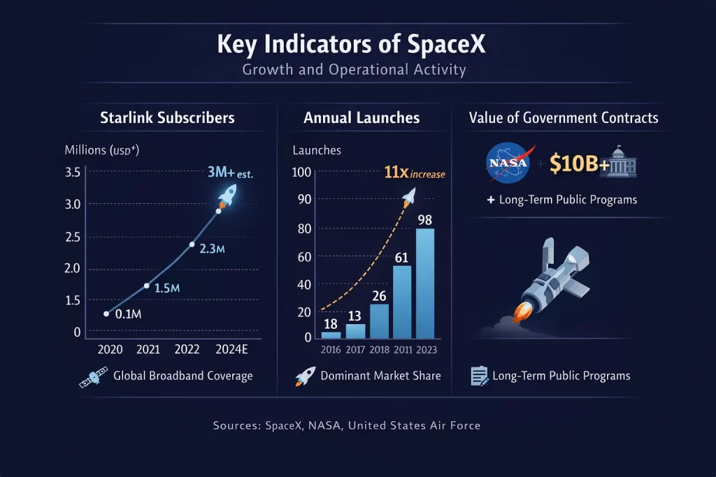 Execution risk is equally important. SpaceX operates at the frontier of multiple industries, where success depends not only on demand but also on technological reliability, regulatory frameworks, and the ability to scale complex infrastructure. Delays, cost overruns, or underperformance in any of these areas could materially impact the investment case.