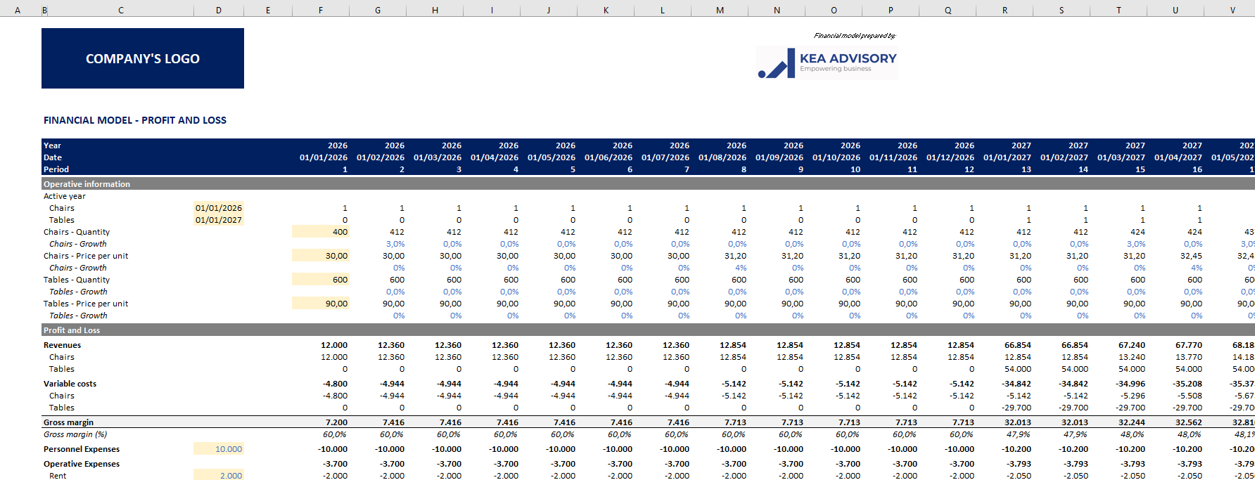 • 5-year Cash Flow Statement (annual and monthly basis)